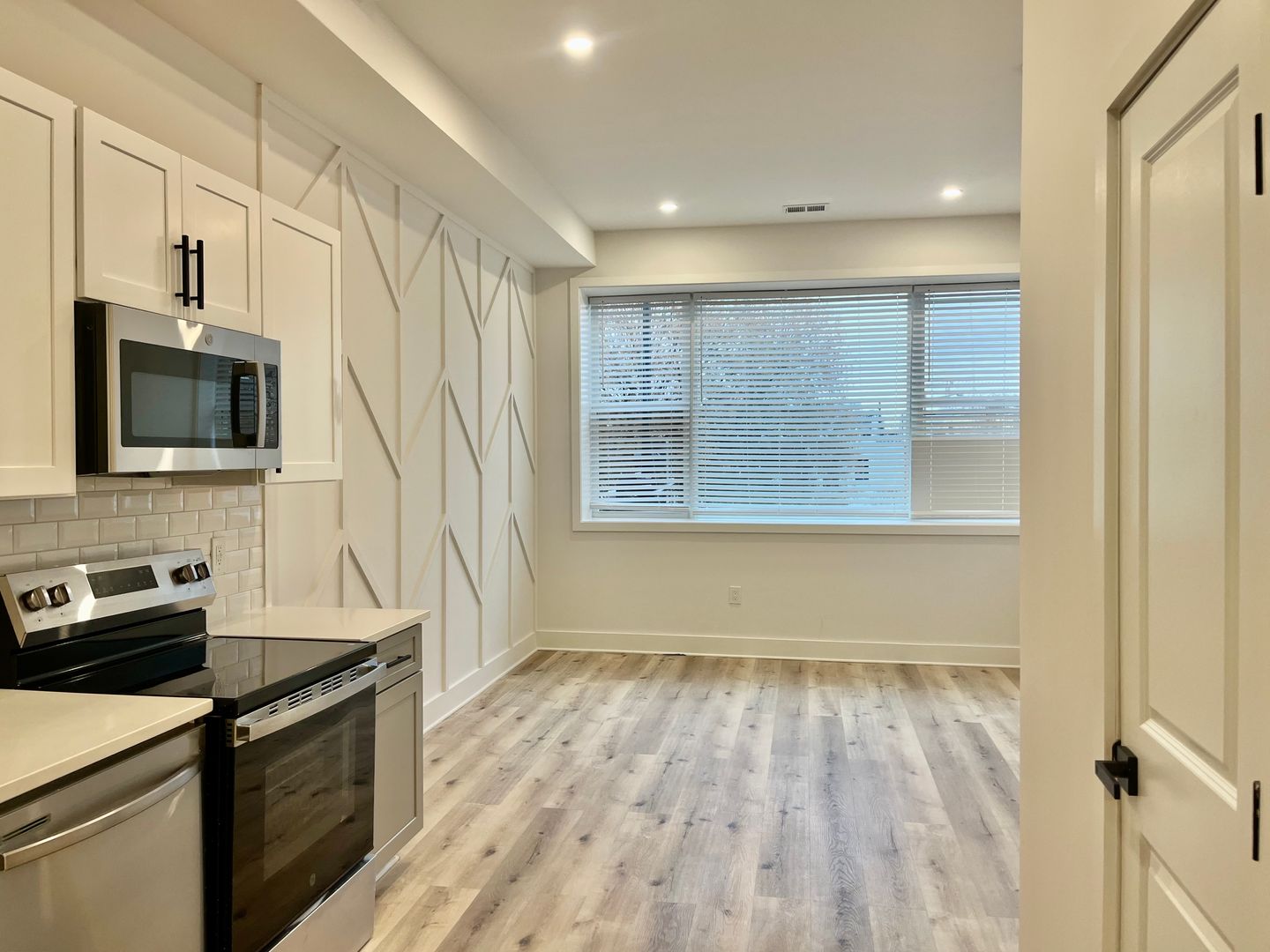 The kitchen is outfitted with brand-new, top-of-the-line appliances, elegant countertops, and ample storage.
