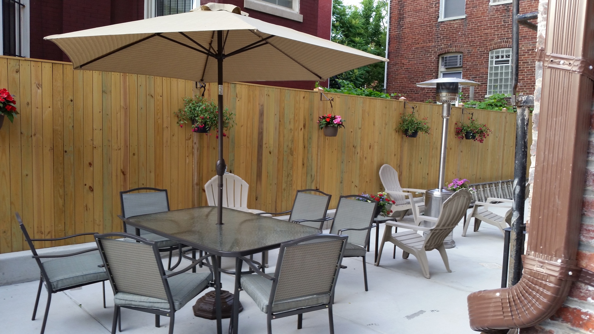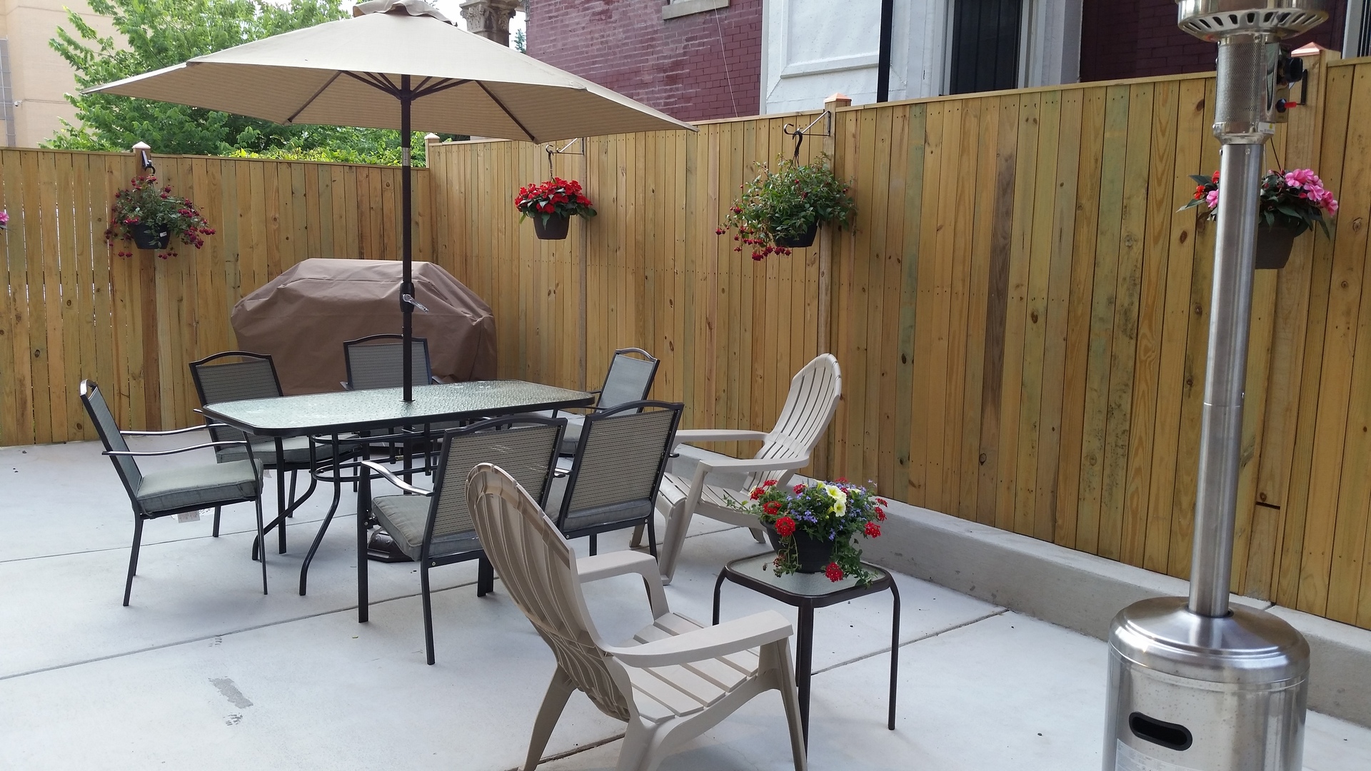 - Outdoor patio with BBQ grill (shared area)