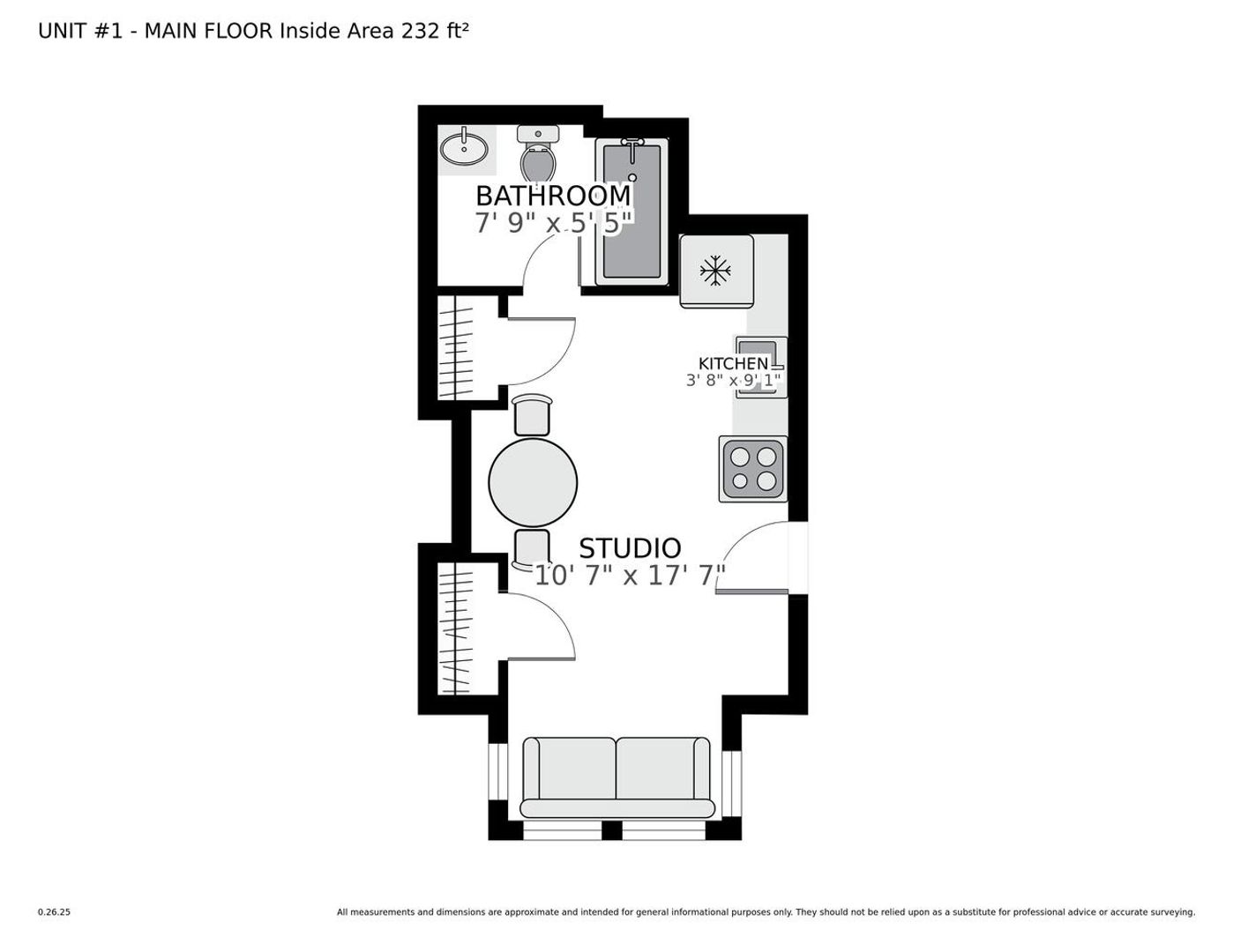 - Approx. 300 sq ft Studio, 1 Bath