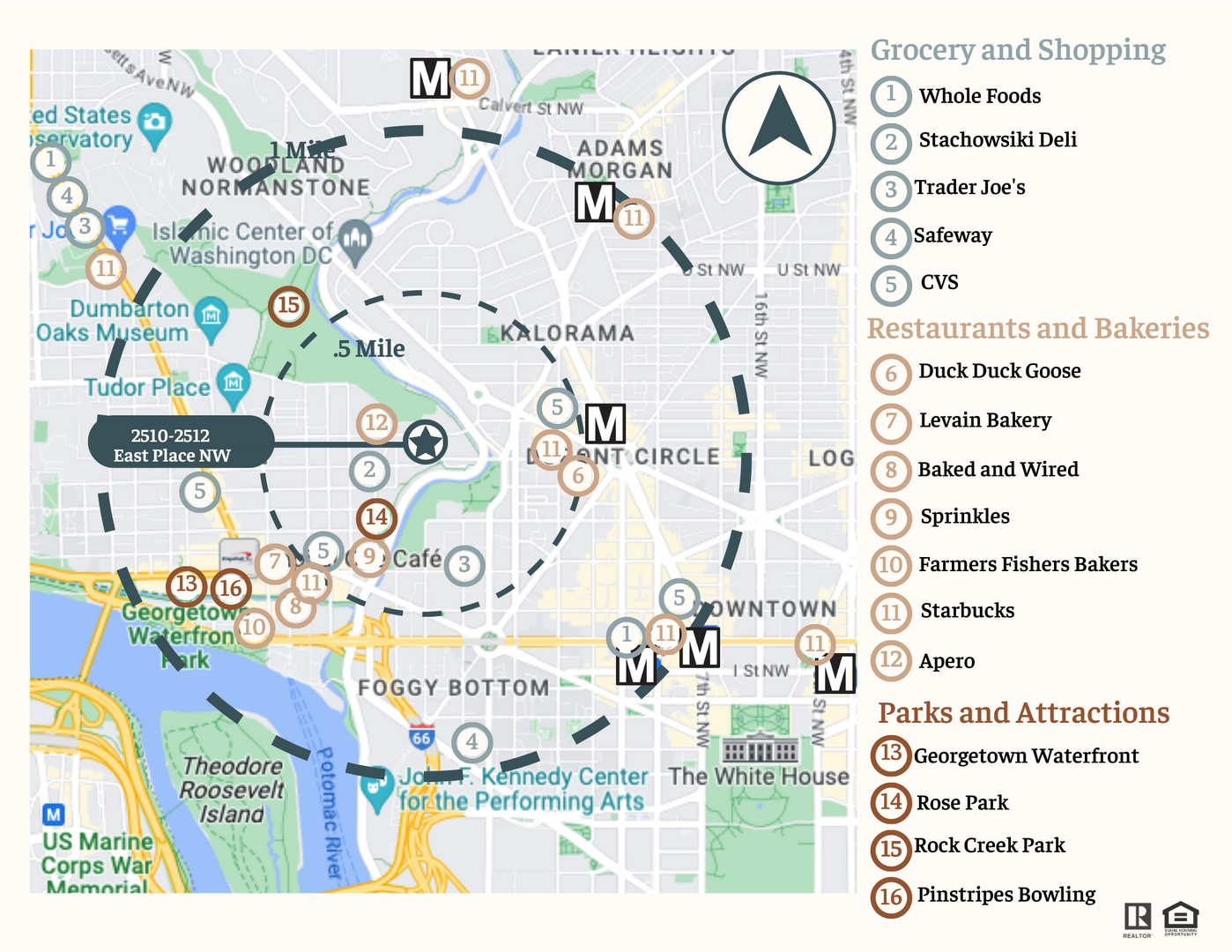 - Less than a mile form Dupont Circle & Foggy Bottom Metros