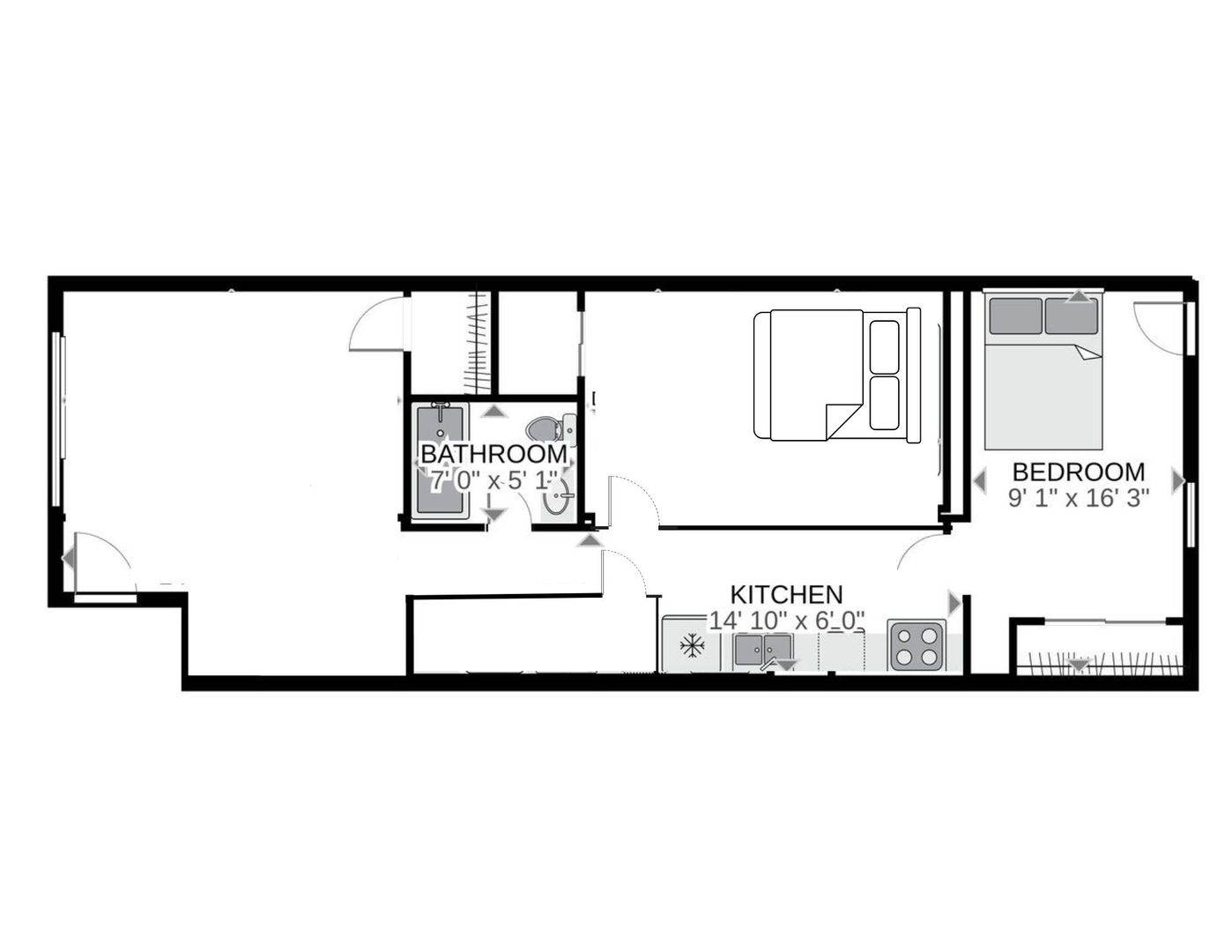 - 1 Bedroom + 1 LARGE Den, 1 Bath